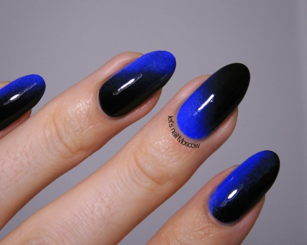 маникюр из голубого и черного цвета - View Full